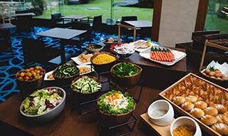 Approximately 40 buffet dishes of Japanese, Western, and Chinese cuisine.