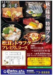 秋の味覚 特別プラン「松茸とトラフグ プレミアムコース」…