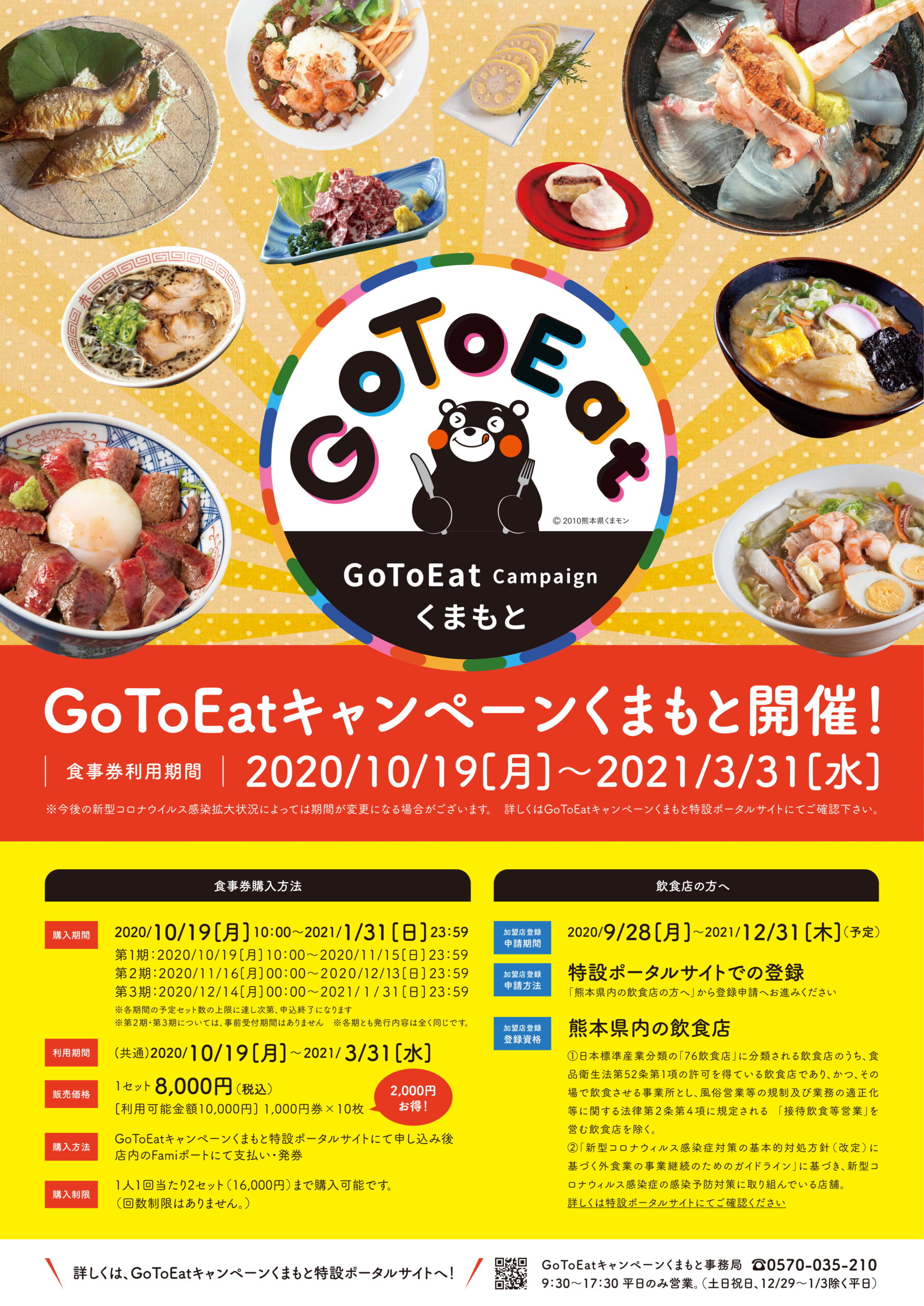 詳しくは、Go To Eatくまもと特設サイト(https://gotoeat-kumamoto.jp/)へお問合せ下さい。事務局 0570-035-210 平日の9:30~17:30のみ営業(土・日祝日・12/29~1/3は除く)