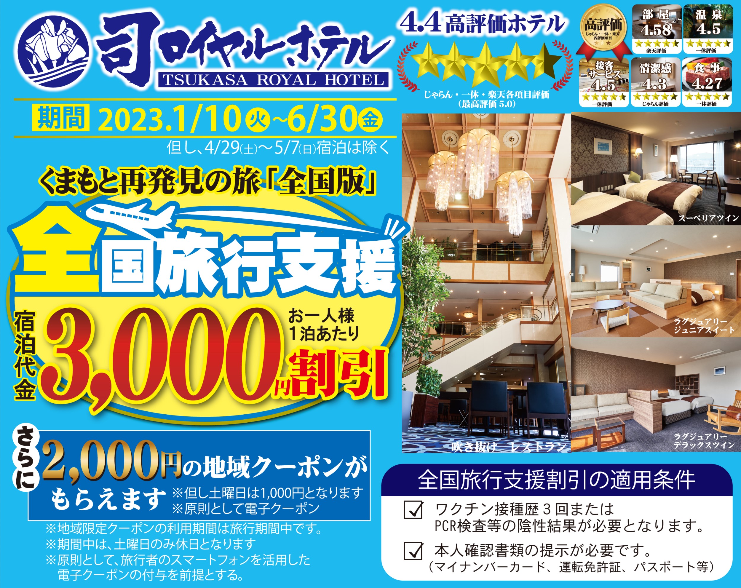 ※ワクチン3回接種済証等(予約時又は旅行当日)、又は検査結果通知書(旅行当日)の提示が必要です。(宿泊施設又は旅行会社が確認します)