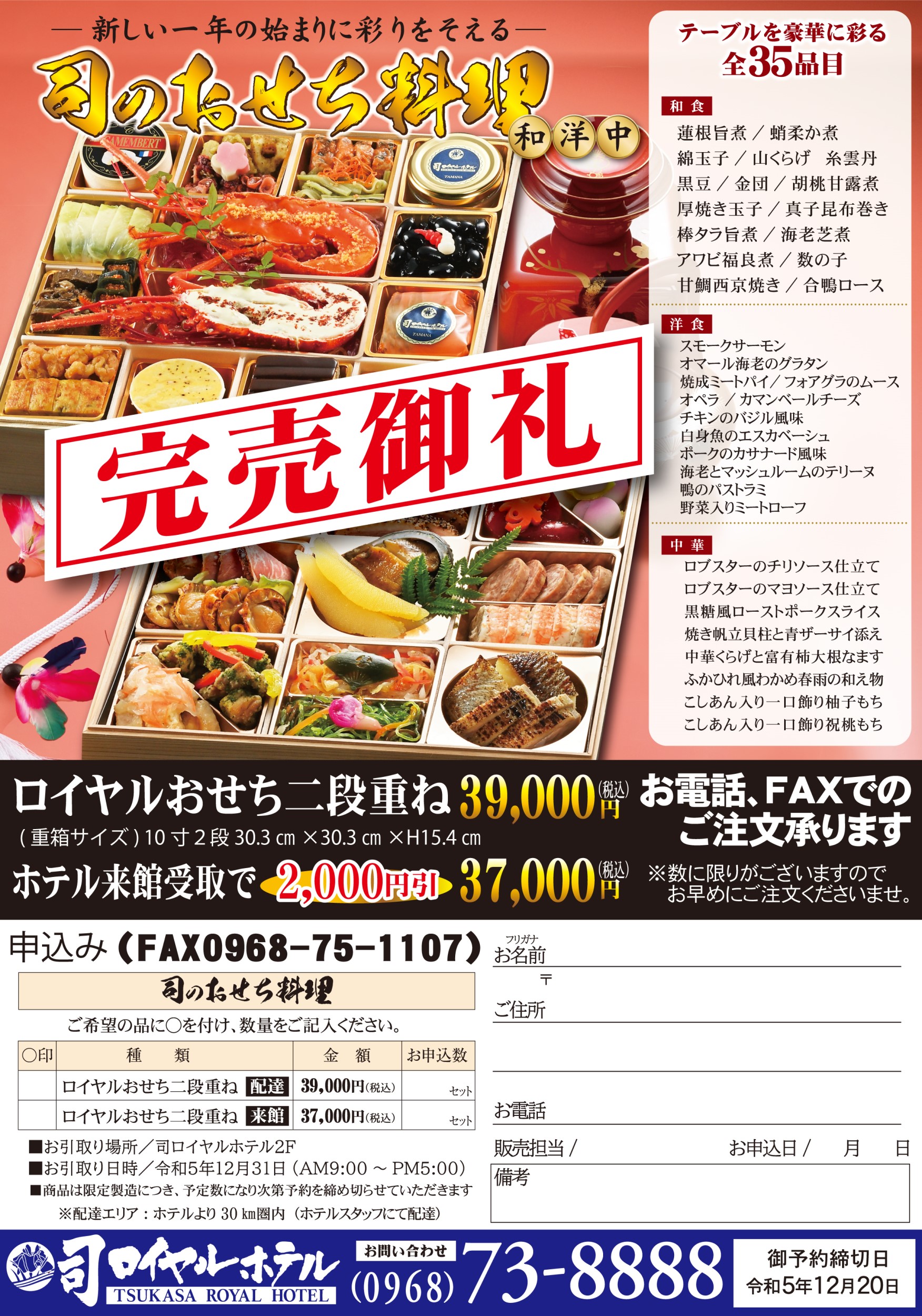 つかさのおせち料理 完売のお知らせ