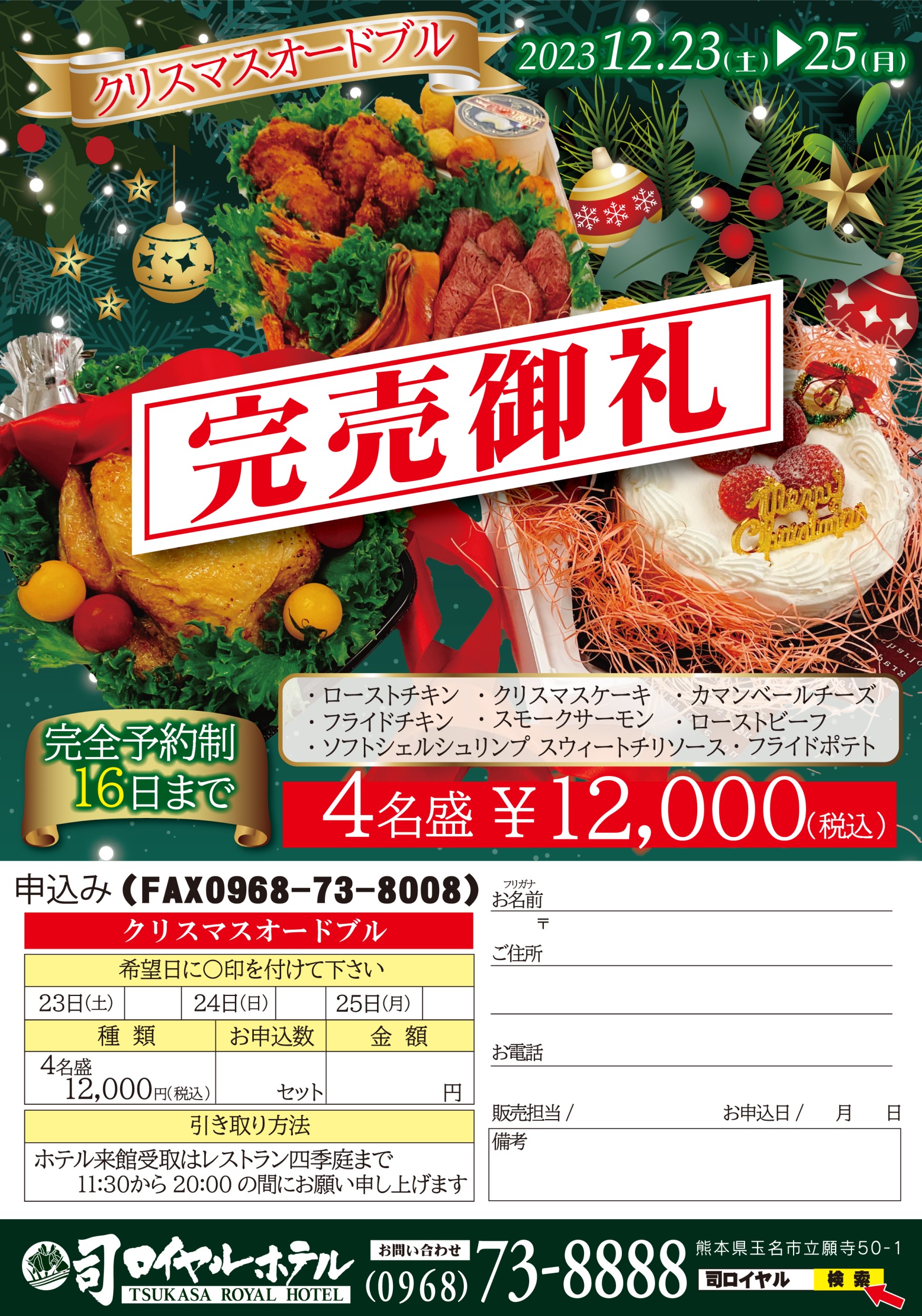 クリスマスオードブル 完売のお知らせ
