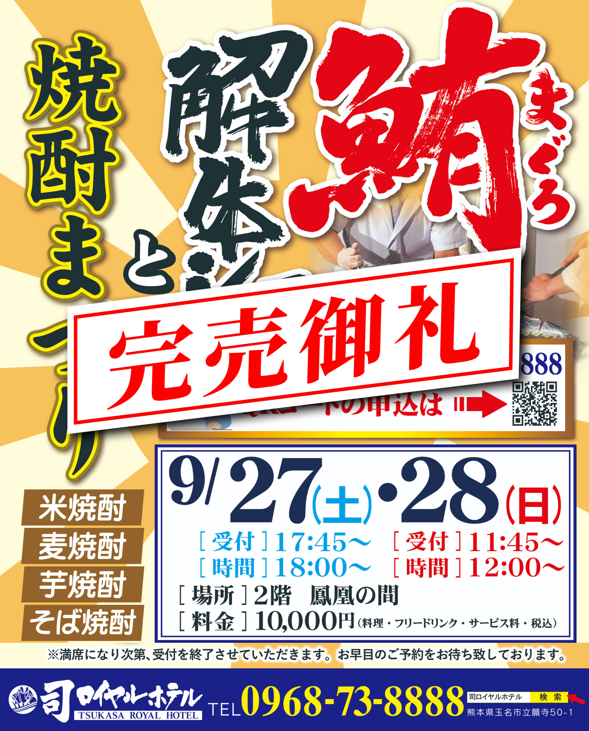 『鮪解体ショーと焼酎まつり』 チケット完売のお知らせ