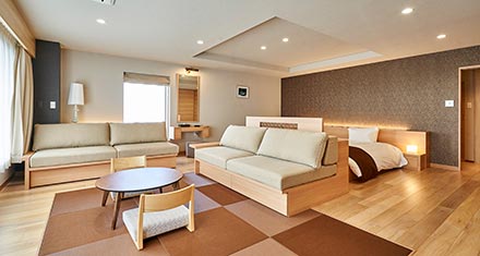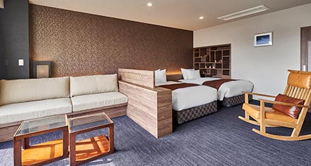 - 様々な状況に対応できる、広々とした客室です。いつもとは少し違う空間で、ごゆっくりとお寛ぎください。