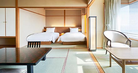 - 伝統的な和の美しさが漂う落ち着いた空間で、快適にお過ごしいただけます。